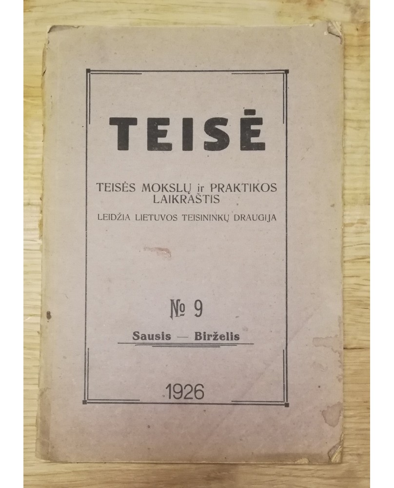 "Teisė", Nr. 9, sausis-birželis 1926 m.
