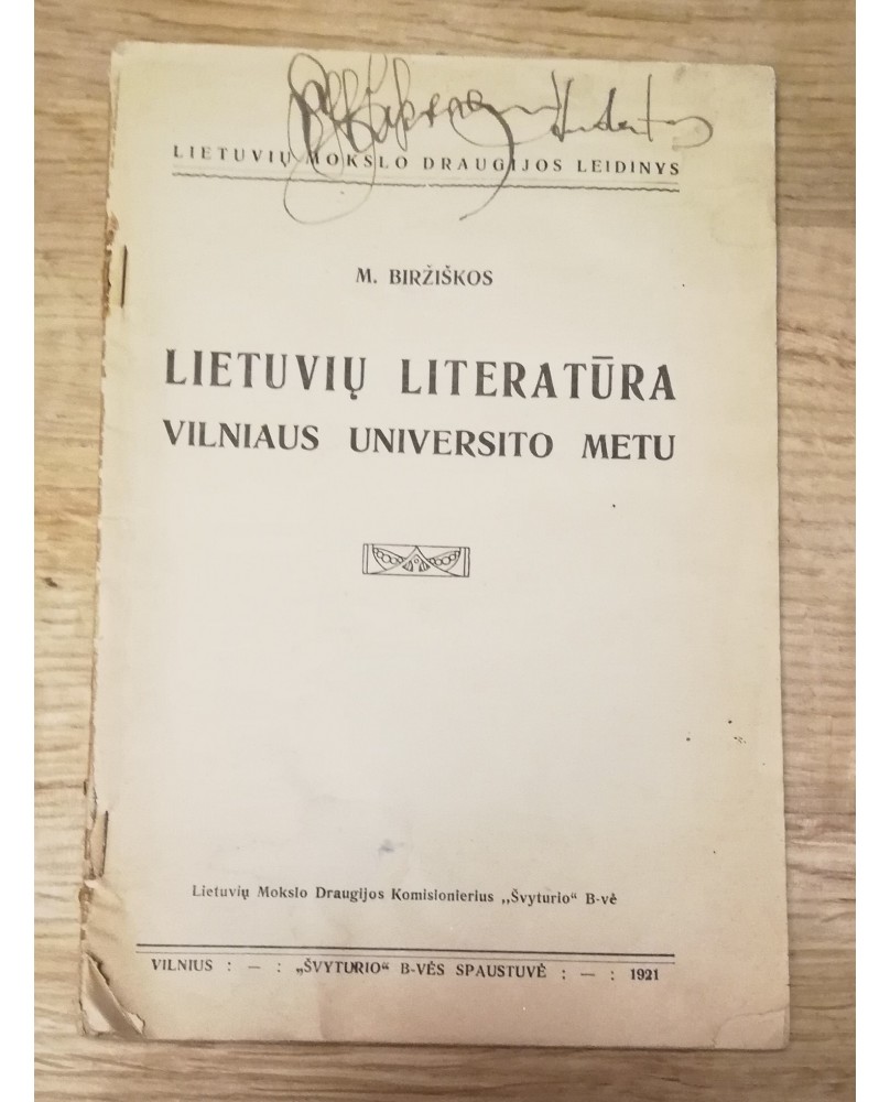 M. Biržiškos, "Lietuvių literatūra Vilniaus universito metu", 1921 m.